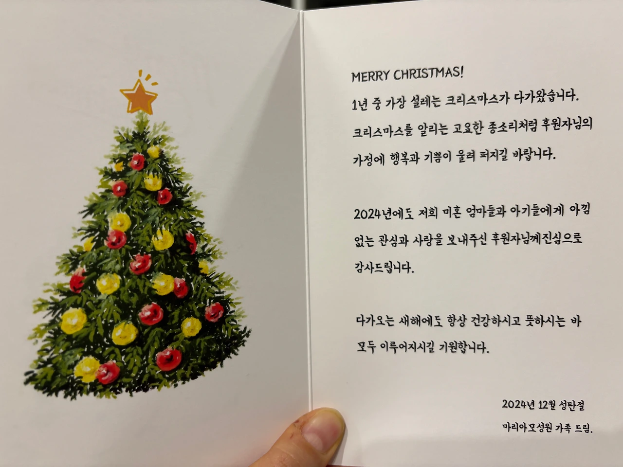 내 손이 한 일 중 하나는 부산에 있는 미혼모와 아이들을 위한 기부이다. 수녀원에서 운영하는 미혼모 보호단체에 매달 소액을 기부하고 있다. 3년을 넘겼고, 2025년이 되어서 이제 4년 차가 되었다. 원래는 미혼모부자녀를 위한 단체였는데, 시의 예산이 삭감되면서 이런저런 변동이 있었고, 현재는 미혼모의 자립과 아이들의 양육을 위한 단체로 변경되었다. 내가 발딛고 사는 내 지역사회에서 태어난 아이들이 안전하게 보호받길, 그리고 그 아이들을 보호하고 양육하는 양육자들도 평안했으면 좋겠다는 생각에 미혼모 단체에 기부를 하고 있다. 이 단체에서 편지와 달력을 보내주셨는데, 달력은 책상 위에 올려두고 잘 쓸 것이고, 편지는 눈에 잘 보이는 곳에 올려두려고 한다.