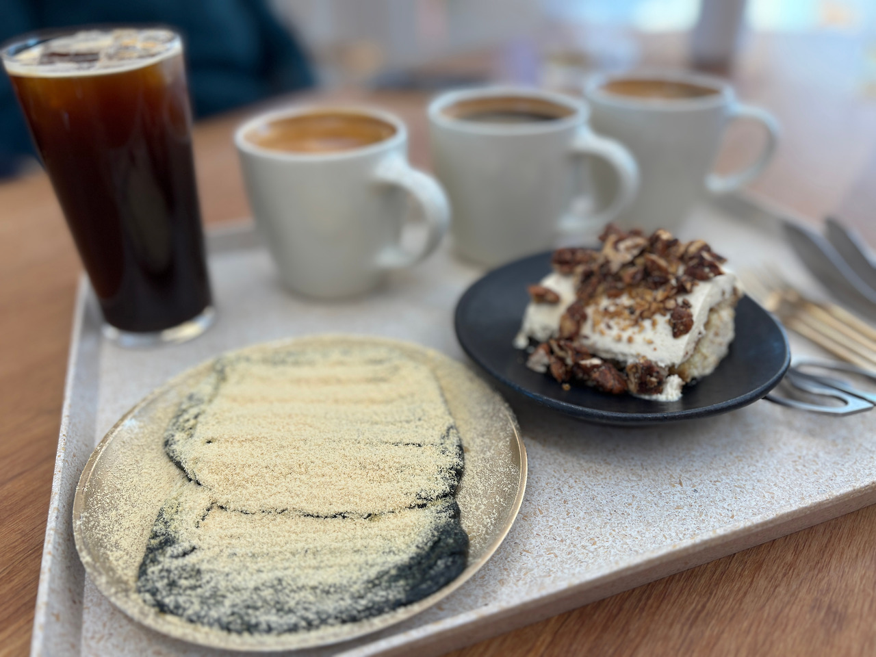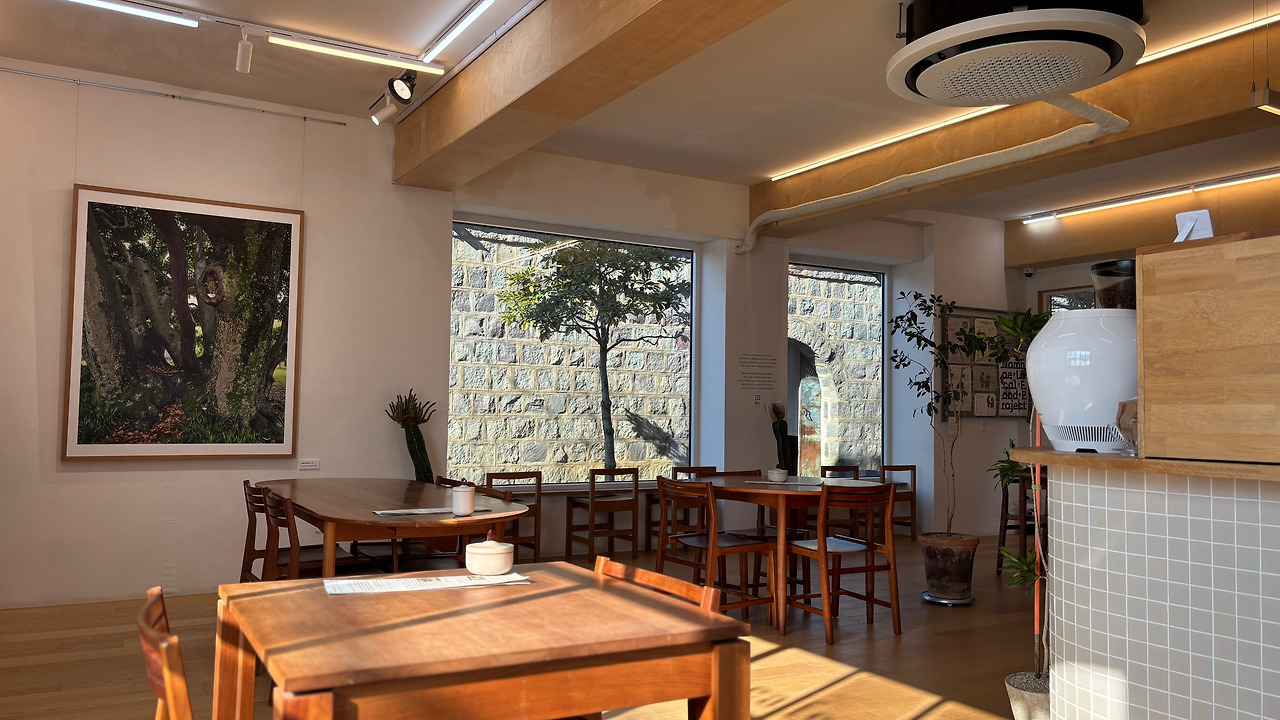 돌창고를 좋아하는 이유는 여러 가지가 있지만, 그중 하나가 커피가 내 취향이기 때문이다. 돌창고에서는 두 종류의 원두로 커피를 내려주는데, 나는 돌창고 블렌드를 좋아한다. 산미 없이 묵직한 맛. 요즘은 산미 있는 커피가 유행인 건지, 산미가 없는 커피를 찾기 힘들다. 산미 있는 커피를 안 좋아해서 내 입에 맞는 원두를 찾기 힘든데, 여기 돌창고 블렌드가 딱 내 입맛이다. 그래서 남해 갈 때마다 방문해서 원두를 구입해 온다(그런데 이번엔 깜빡 잊고 원두를 못 사 왔다. 당분간 커피 없는 생활을 해야 할 것 같다. 벌써 슬프군). 이번 남해 여행에도 여기 커피 마시고 싶어서 몇 번을 다녀간지 모른다. 남해에 온 첫날은 카페 휴무일이었지만, 혹시나 내가 모르는 사이에 휴무일 바뀐 거 아닐까 하는 헛된 기대로 카페 주위를 어슬렁 거렸다는(카페 주변에 어슬렁 거린 사람, 접니다.. 오해하지 마세요.. 나쁜 사람 아닙니다). 그런데 여기 디저트도 맛있다. 쑥개떡과 미수티라도 무척 맛있다. 그렇지만 오늘은 배탈 이슈로 커피만 주문하고 미수티라는 선물용으로 포장.