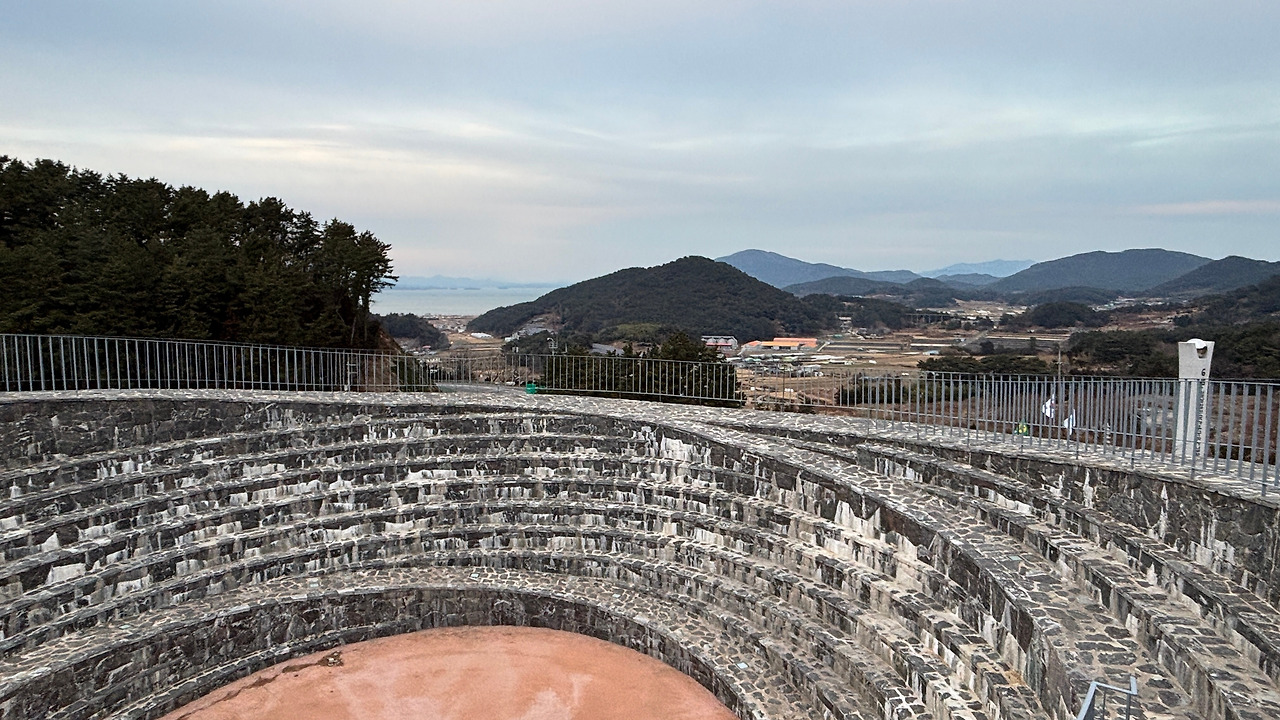 멀리서 보는 바다는 또 달랐다. 아마 맑은 날에 오면 또 다른 느낌이 들겠지. 봄이 되면 한 번 더 와야겠다는 생각을 하며 내려왔다. 그때는 푸드트럭도 가봐야지. 그런데 전망대 앞에 한국전쟁과 관련한 기념비가 있었는데, 조금 생뚱맞다는 느낌이 들었다. 한국전쟁과 이 앵강만은 무슨 관계일까. 전망대는 아직 미완성이었고, 계속해서 뭔가가 만들어지고 있었다. 완성이 되면 저 조형물의 정체도 알게 되겠지. 다음에 올 때는 완성되어 있길 기대한다.