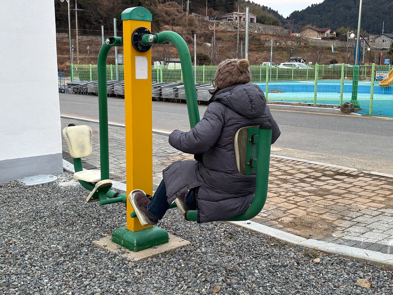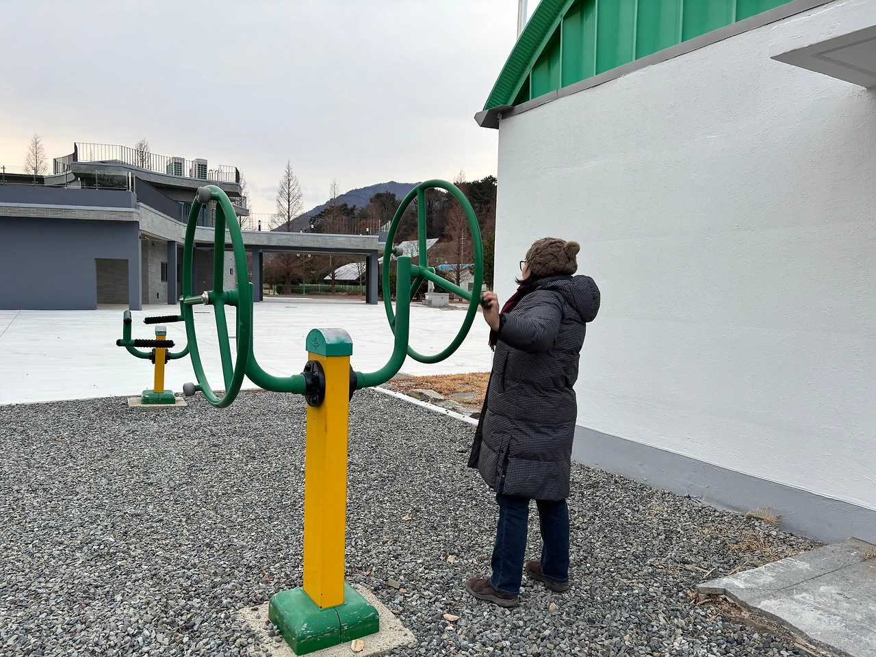 그런데, 앵강다숲 공원도 지역민들이 자주 이용하는 공원인가 보다. 생활체육기구들이 설치되어 있었는데, 친구 G는 생활체육기구 마니아라 이 기구들을 보면 그냥 지나치지 않는다. 본인 말로는 오십견(!)이 와서 이런 기구들이 보일 때면 꼭 어깨 돌리기를 해야 한다고 한다. 그러면 굉장히 시원하다면서 나에게도 꼭 해보라고 권한다.