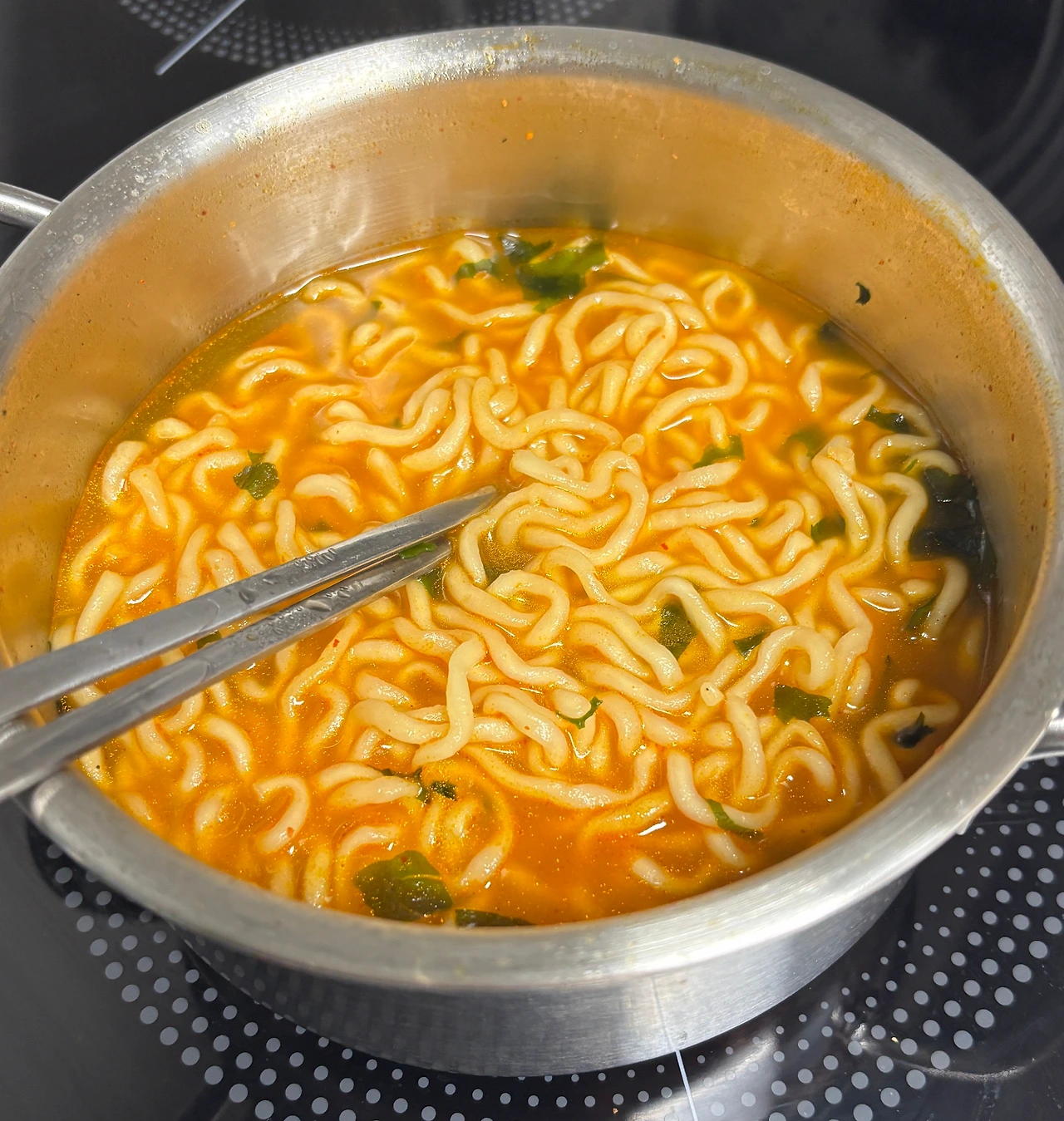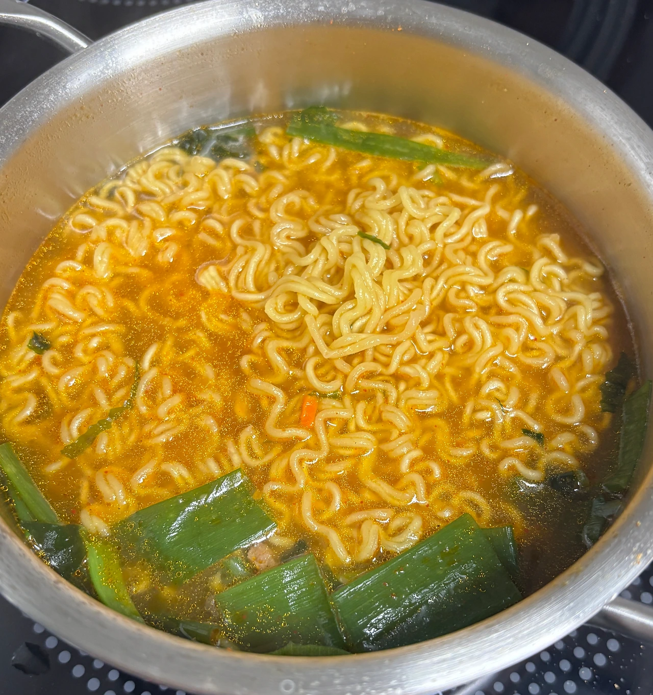 중간에 물이 넘쳤는데 왜 물이 많은 걸까. 역시나 면발이 퍼졌다. 시간을 잘못 잰 걸까.