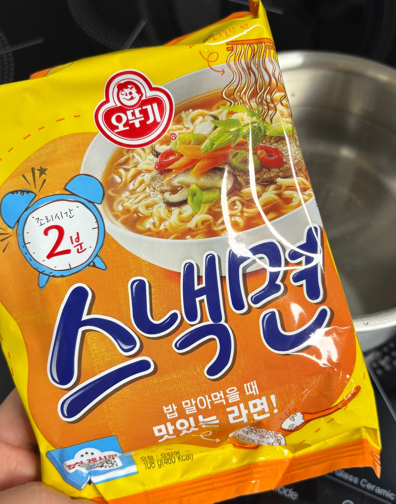 이번엔 얇은 면인 스낵면. 2분만 끓이면 된다니까 왠지 잘 할 수 있을 것 같다. 도전!