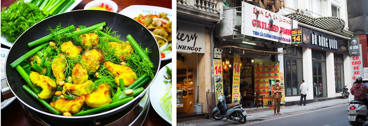 좌측, Cha Ca La Vong, 우측 Cha Ca La Vong 식당을 처음 운영했던 Hang Son 거리 14번지