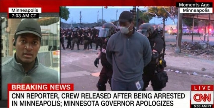 반인종주의를 규탄하는 시위 현장을 취재 중인 CNN 기자를 경찰들이 생방송 중 체포. 남미계 기자는 1시간에 만에 풀려났는데 흑인 기자는 경찰서에서 뒤늦게 풀려남. 인근 다른 현장에 있던 CNN 백인 기자는 체포되지 않았다는 사실이 전해져 분노는 극대화되는 중. (게다가 CNN은 트럼프가 가장 싫어하는 언론)