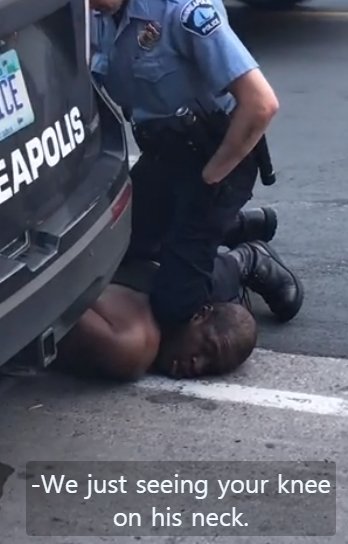 백인 경찰이 체포 과정에서 비무장 흑인을 무릎으로 목을 짓눌러 사망케 함. 사망한 흑인은 숨을 쉴 수 없다며 살려달라고 계속 애원을 했고 당시 현장에 있던 시민들이 경찰을 말리려 했지만 소용없었음. 체포 과정은 시민들에 의해 촬영되어 고스란히 공개. 연이은 인종차별 사건으로 항의 시위와 발생, 폭력적인 시위로 확산.(검시관이 외상에 의한 질식 또는 교살을 뒷받침할 증거를 찾지 못했다고 말하면서 불 구덩이에 다이너마이트 100 상자를 던져버림)