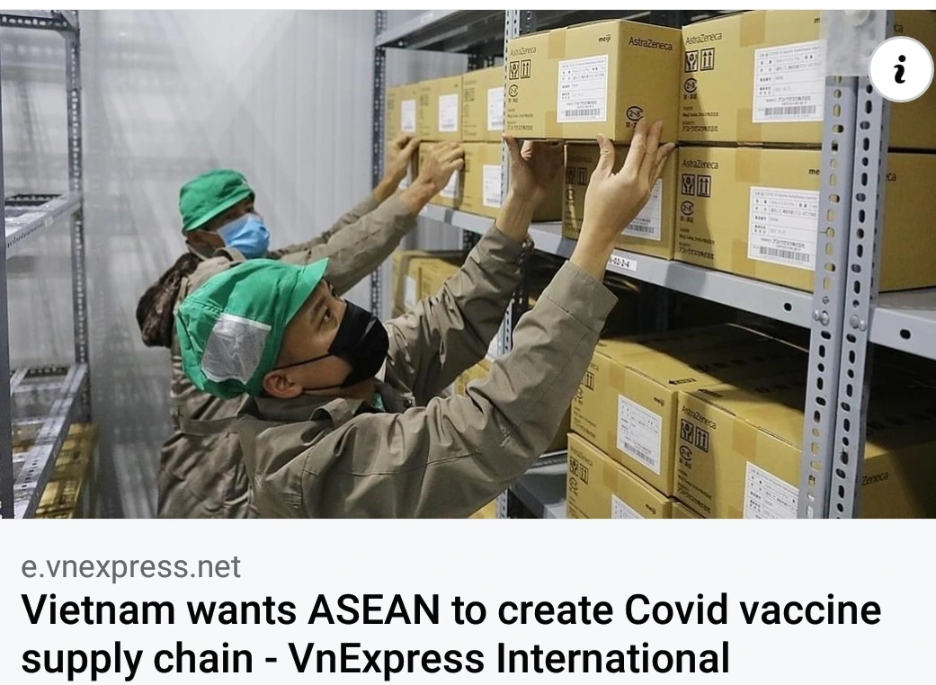 "As one of the ASEAN member states that have been promoting Covid-19 vaccine research and proactively producing vaccines, Vietnam suggested the bloc soon transfer technologies to each other to produce vaccines and drugs to treat Covid-19, forming an autonomous supply chain of the region."