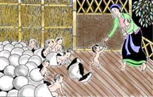 선계의 여인인 어우 꺼와 용왕의 아들인 락롱 꿘이 서로 사랑을 해서 알을 하나 낳았다. 그런데 이 알이 100개로 늘어 낳고 그 알에서 100명의 사내아이들이 태어났다.