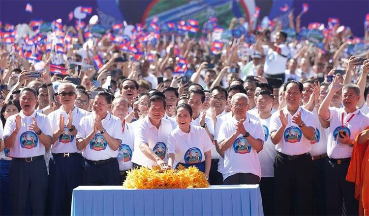 푸난테초운하 착공 시작 버튼을 누르는 훈마넷 총리 부부 출처_캄보디아 총리실 X 페이지