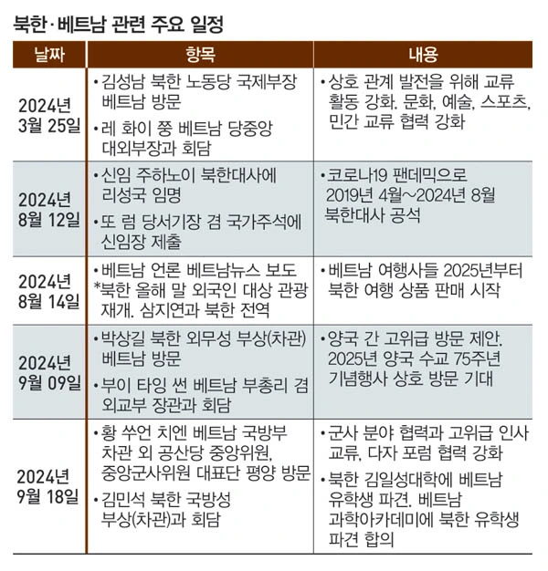 최근 북한이 베트남과의 관계에 적극적인 모습을 보여주고 있어 남북문제에 있어 베트남의 역할을 기대해 볼 수 있을 것으로 보인다. 24년 3월 15일 김성남 북한 노동당국제 부장이 대표단을 이끌고 베트남을 방문해 Le Hoai Trung (레호아이쭝) 베트남 공산당 대외부장과 회담을 했다. 양국 상호 관계 발전을 위한 민간 교류 협력이 주요 의제였지만 전쟁도 불사한다는 북한의 움직임에 전세계가 주시했다.