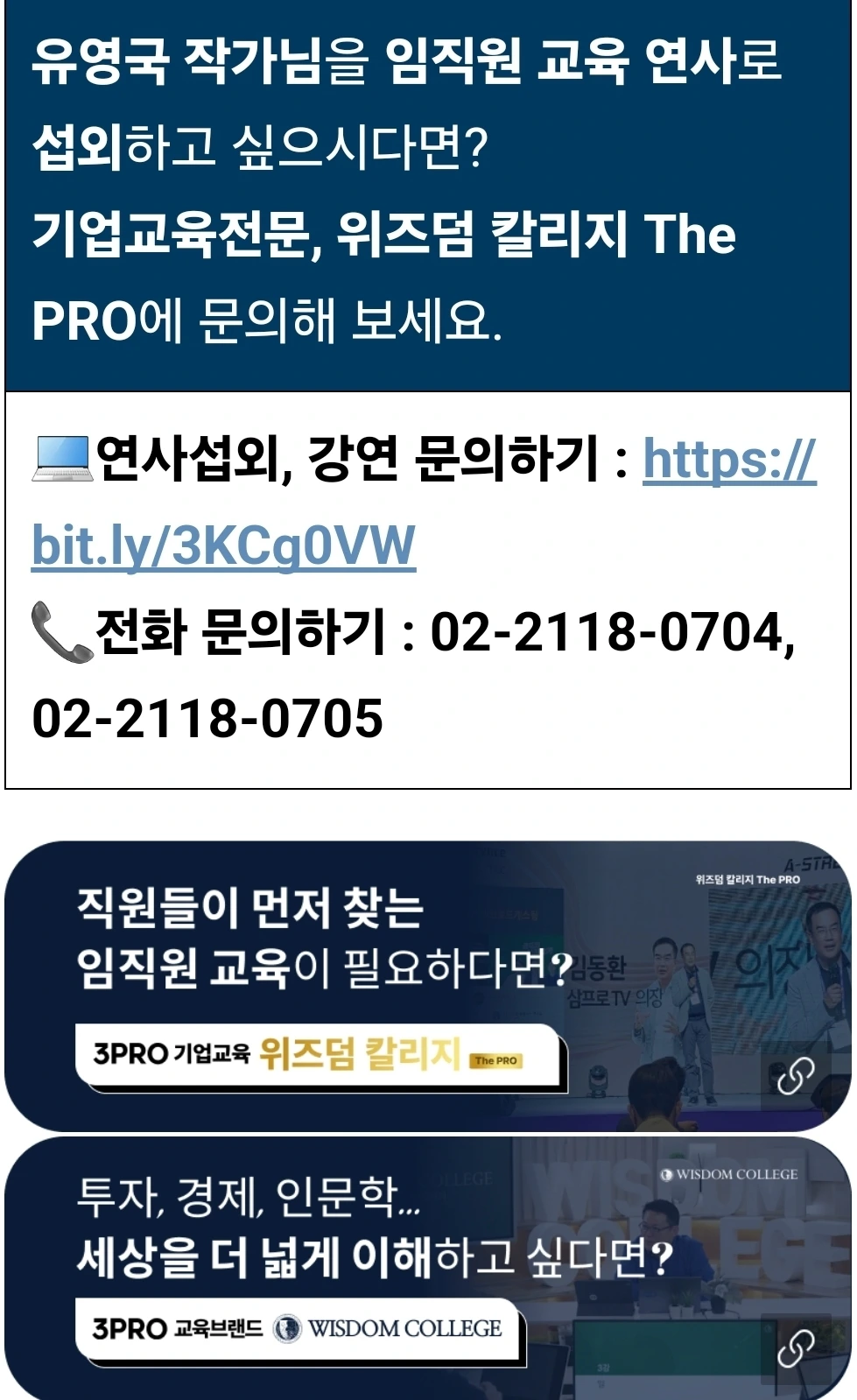 강의 신청은 3PRO TV 위즈덤 칼리지 교육 담당자 강유정 책임에게 직잡 연락 주셔도 됩니다!