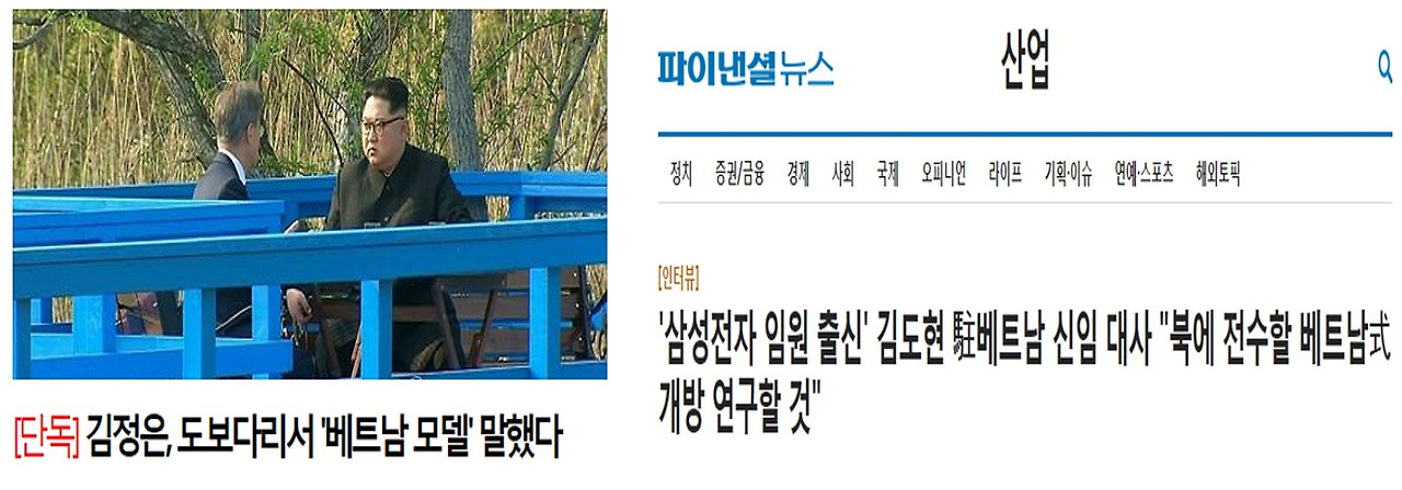 북미 회담이 이루어지고 나면 남북 종전, 미국의 대북금수 조치 중단, 북한의 본격적인 경제 개방이 선언될 것으로 보인다. 전 세계 탑 이슈로 한동안 스포트라이트를 받을 북한의 변화와 함께 그림자처럼 베트남이 따라붙을 것이다.