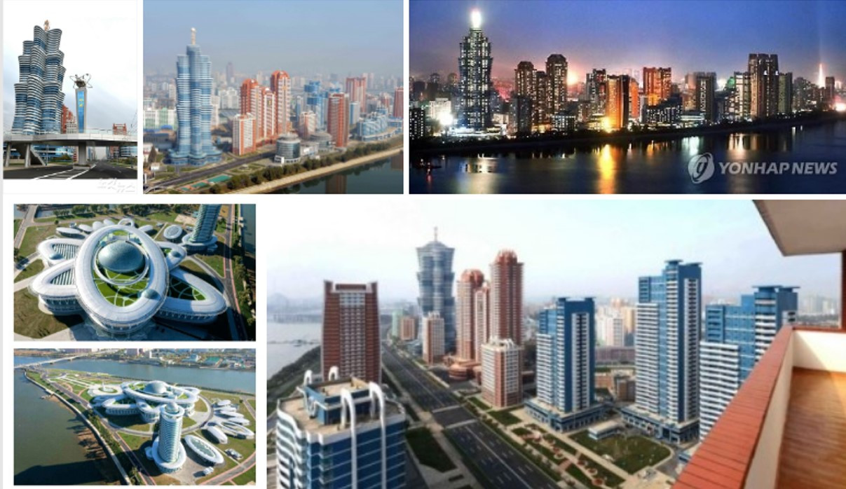 최근 평양에 새롭게 조성된 신시가지인 미래과학자거리. 김정은의 지시로 조성되었다고만 알려져 있는데 사실은 북한 내 신흥 부자인 '돈주(쩐주)'들에게 분양권을 과감하게 보장해주어서 만들어진 것이라고 한다. 아무리 절대 권력을 쥐고 있는 북한의 김정은이라지만 경제는 자기 마음대로 할 수 있는 것이 아니라는 것을 잘 알기에 국가 내에 돈을 쥐고 있는 권력들을 잘 어르고 달래어서 만들어낸 성과물이다.