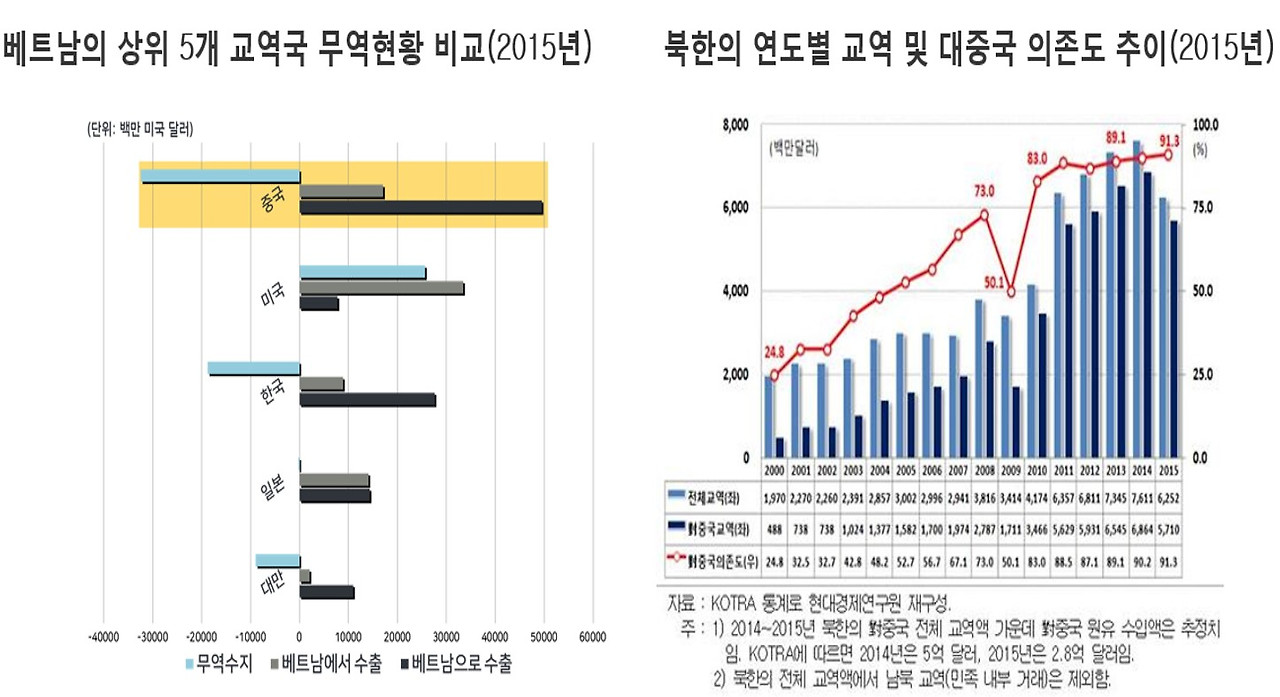 북한 입장에서는 어떻게 해서든 중국의 영향력을 줄이는 것이 시급한데 베트남의 대중 무역 의존도를 급격히 낮추고 있는 모습이 눈에 띄었을 것이다.