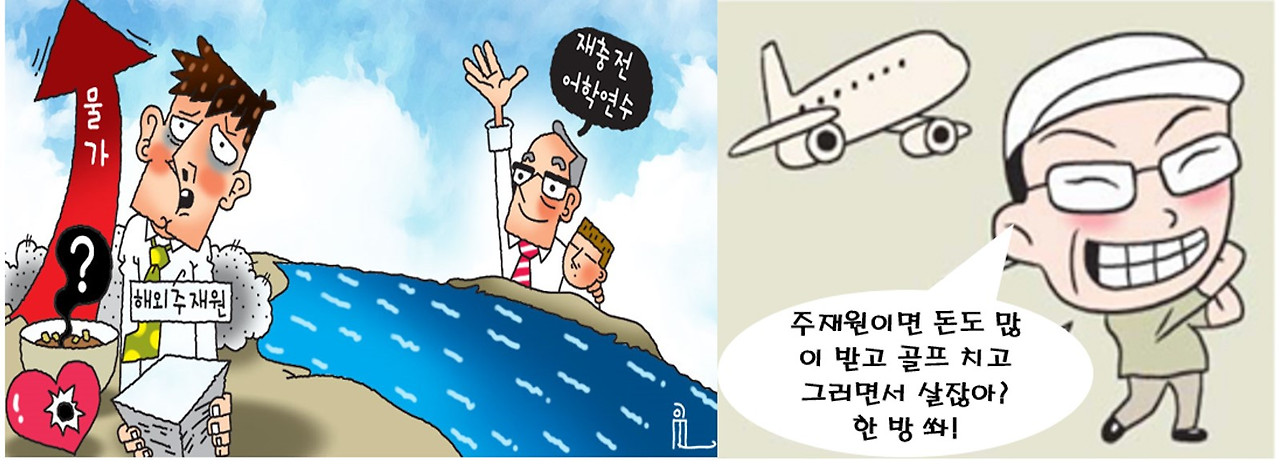 비행기 타고 해외에 나가 영어, 스페인어, 중국어 등등 쏼랴쏼랴 외국어로 외국인 직원하고 일하고 한국에서 받는 월급보다 훨씬 많은 급여를 받고 풀장 딸린 집에서 살면서 한국 휴일도 쉬고 현지 휴일도 쉬면서 멋진 파티에도 나가는 뭔가 되게 멋진 느낌적인 느낌이 마구 뿜어 나오는 엘리트 직장인의 표상 주.재.원!!