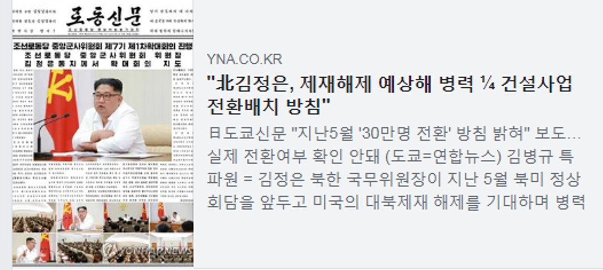 얼마 전 도쿄신문의 보도에 따르면 김정은 대북 제재 해제를 대비해 군 인력의 25%에 해당하는 30만 명을 건설 산업 인력으로 전화 배치할 계획이라고 한다. 아직 사실 여부가 밝혀지지 는 않았지만 다행스러운 반가운 소식이다.