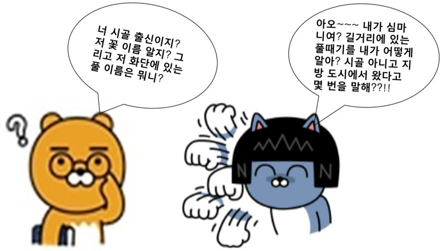 대학을 다닐 때 지방 출신이라는 이유만으로 나에게 '저 나무 이름이 무엇이냐?', '저 꽃의 이름은 무엇이냐'라고 물어 올 때 황당하기 그지없었다. 난 밥상에 올라오는 나물 이름도 잘 모르는 사람인데 말이다.