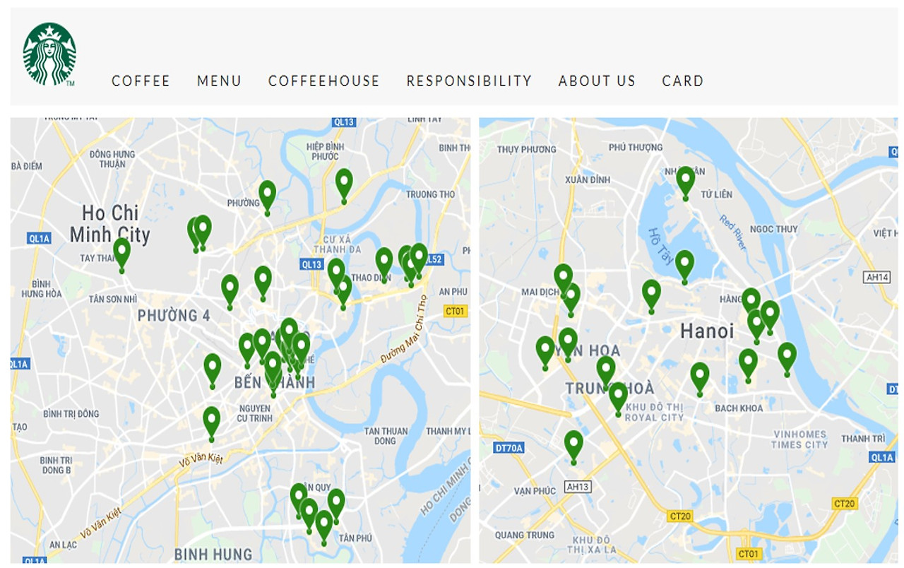2019년 4월 15일 현재 스타벅스 베트남은 호찌민 29개, 하노이 15개 매장을 운영 중이다.