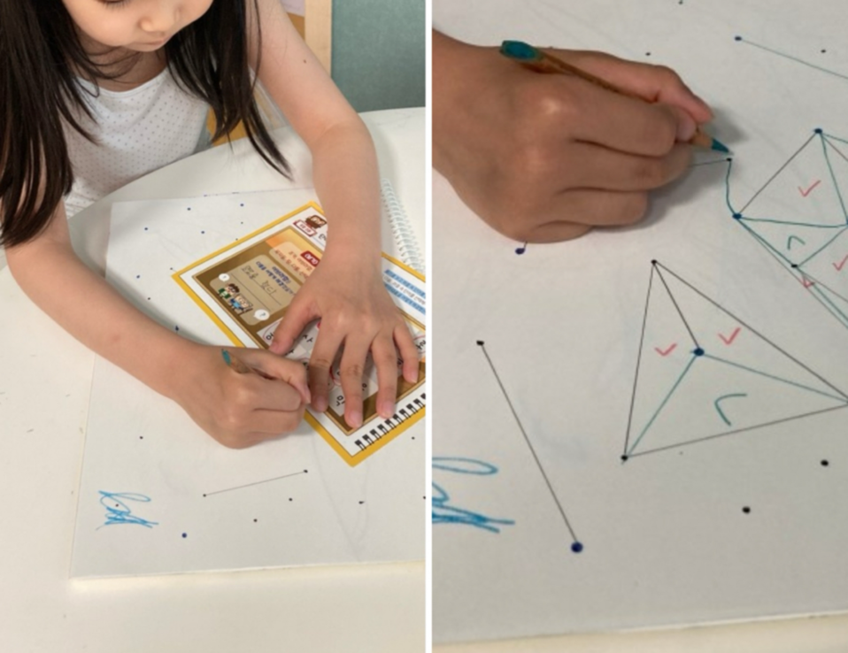 9살이 된 아이와 같이 해봤던 매우 간단하고 집중력발휘하게 되는 놀이! 바로바로 '삼각형 만들기' 놀이에요. 학창시절 많이들 해봤을 법한 그 놀이.