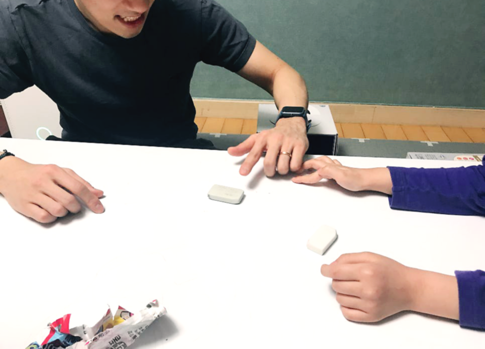 어릴때 많이 하던 지우개 싸움! 아이들에게도 전수해봅니다. 방법은 다 아실거에요. 지우개를 손가락으로 넘기며 이동하디가 상대방 지우개를 덮으면 1점(3점 또는 5점 승), 아예 위로 올라타면 K.O승!