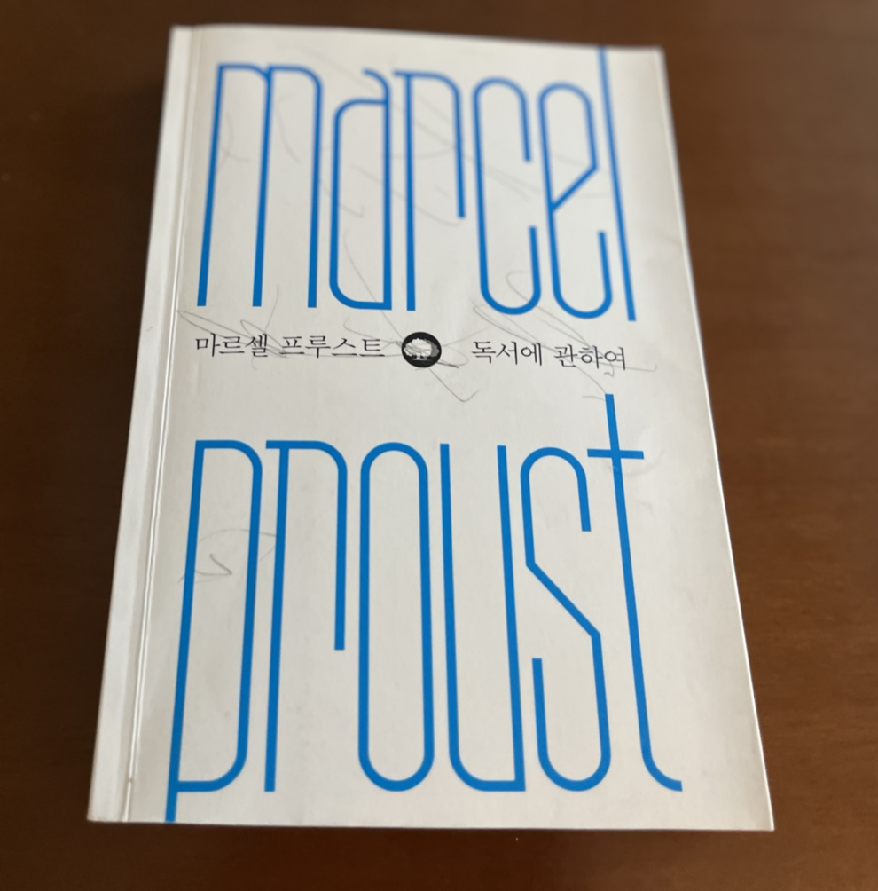 어쨌거나 집에 있는 책들로 열흘을 버텨야만 하는데 읽었던 책들은 더 이상 땡기지 않았고, 그러다 보니 어쩌다 눈에 다시 들어온 책, <마르셀 프루스트, 독서에 관하여>(*이 책은 프루스트의 산문 중에서 그의 예술론이 잘 나타나 있는 것들을 옮긴이가 골라 번역한 책이다.) 책장 앞에 선 채로 슬쩍 표지를 넘겨 첫 페이지를 읽다가 본격적으로 앉아서 보기 시작했다. 처음에 샀을 때 앞에 몇 페이지는 읽었던 모양인지 밑줄이 쳐져 있었다.