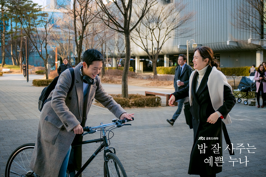이 드라마의 1화에서 너무 예쁜 장면이 나온다. 윤진아와 서준희가 드라마 상에서 처음 함께 등장하는 장면이다. 서준희가 자전거를 타고 윤진아의 주변을 빙빙 돌면서 서로 웃으며 장난치는 씬인데, 함께 이동하면서 윤진아는 자연스럽게 서준희가 있는 쪽으로 선을 넘어간다.