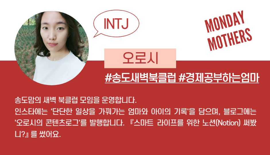 나 : 오빠, 같이 글 쓰기로 한 분들이랑 만든 매거진 이름 <먼데이 마더스>로 정했어. 너무 좋지 않아?