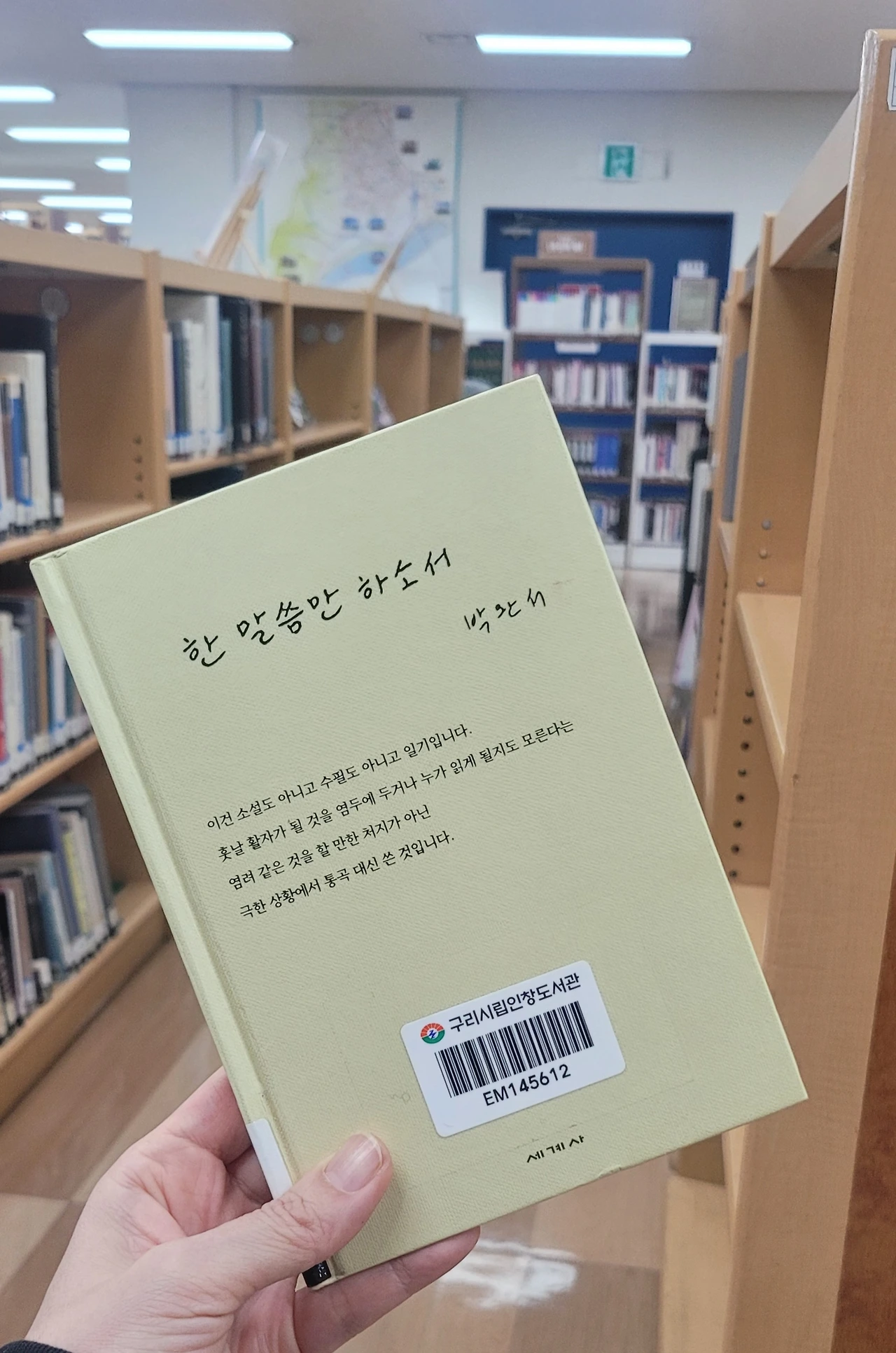 그날 인창도서관에서 내가 만난 운명 같은 책은 박완서 작가의 <한 말씀만 하소서>였다. 불의의 사고로 스물다섯 살 외아들을 잃고 쓴, 참척의 슬픔이 담긴 책이다. 종합자료실 책상에 앉아 읽기 시작했지만, 공공의 장소에서 끝까지 읽어 내려갈 수 있는 책이 아니었다. 나 역시 엄마가 된 지 어느덧 스물다섯 해가 되었다. 자식을 잃는 상실을 내 삶에 겹쳐 상상하는 일은, 감당하기 힘든 슬픔이었다. 끝내 눈물이 올라와 책장을 더 넘길 수 없었다.