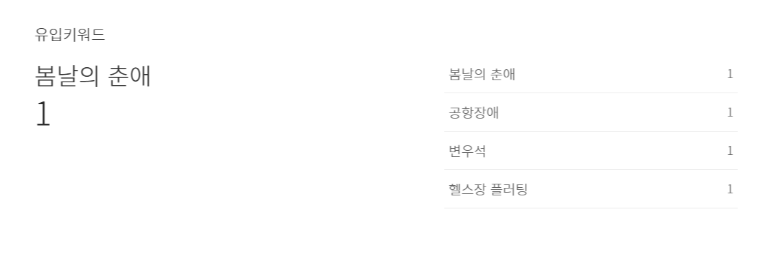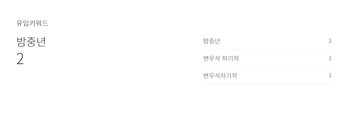 이유는 두 가지인데, 나랑 비슷한 생각을 가진 키워드가 유입되었거나, 전혀 예측하지 못한 키워드가 유입되었기 때문입니다. 어쨌거나, 둘 중 어떤 것이라도 제 글은 그분들이 찾던 정보가 아니었음은분명합니다.