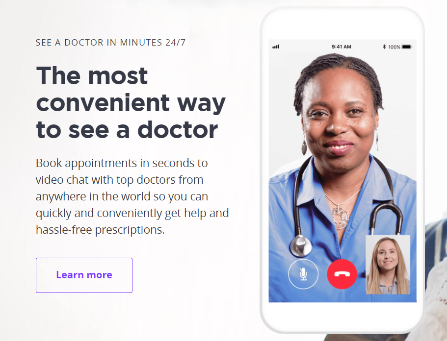 의사를 만나고 싶으면 24시간 언제든 앱으로 영상 통화를 예약할 수 있다. 약속한 시간에 의사가 앱으로 전화를 걸어와 연중 무휴로 전화 상담이 가능하다. 의사는 카메라로 환자 상태를 파악해 증상을 확인하고 상담한다. 처방전이 필요한 경우에는 사용자가 선택한 약국으로 처방전이 보내 진다.