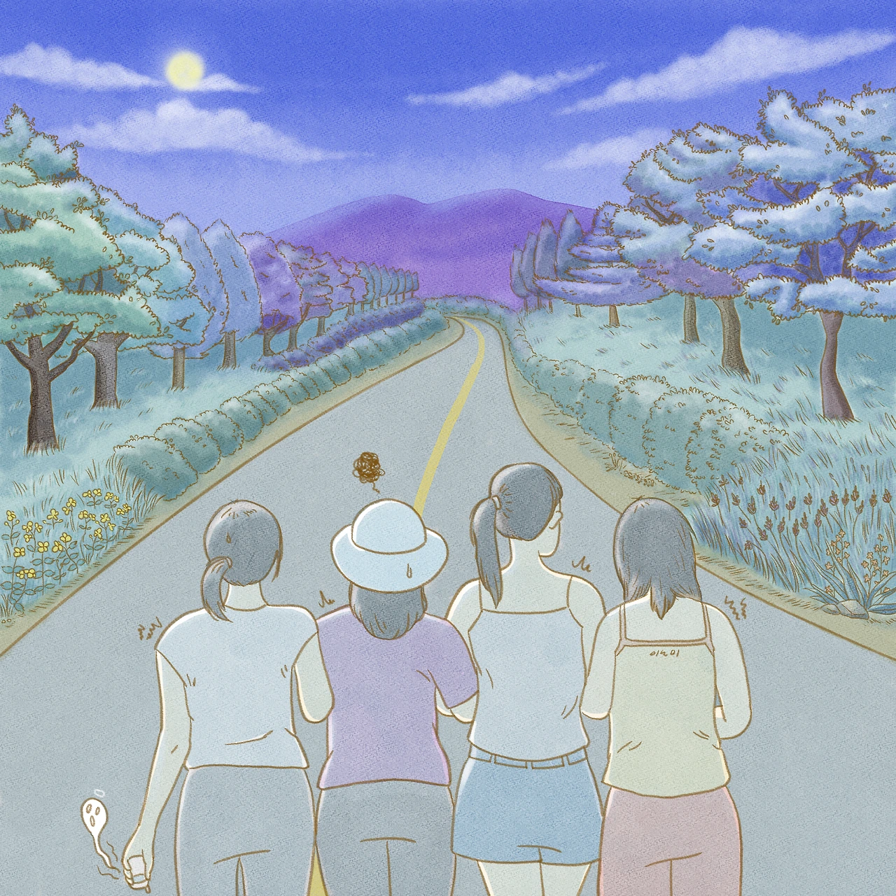우리가 바다에서 출발한 때는 이미 어두워지기 시작했다. 깊은 시골이라 버스는 끊겼고, 오가는 자동차 한 대도 보이지 않는다. 이럴 때는 핸드폰 배터리도 간당간당하다. 집에 있을 사촌 오빠에게 문자 한 통을 보내자마자 사망해 버린 핸드폰을 들고 우리는 망연자실 어둠을 응시했다.