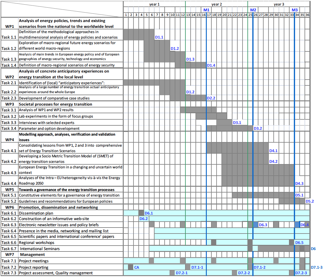 혼자 혹은 몇 명이 일할 때에는 ‘간단한 일 쪼개기’로 충분하다. 하지만 대규모 프로젝트의 경우에는 WBS (Work Breakdown Structure, 업무분해구조, 작업분할구조)와 간트 차트 (Gantt chart)로 관리하게 된다. 특히 간트 차트에서는 단순히 큰 덩어리의 일을 쪼개기만 하는 게 아니라 업무별 예상 소요시간, 실제 소요시간, 담당자, 책임자, 요구되는 자원 등을 적게 된다. 간트 차트를 작성하고 관계자들이 세부사항을 협의하는 데에만 며칠에서 길게는 몇 주의 시간이 걸리기도 한다.