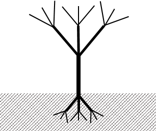 머리 속에 큰 나무를 떠올려 보자. 줄기가 큰 가지로 갈라지고, 다시 잔가지로 갈라지고, 잔가지의 끝에는 잎이 달려 있다. 땅 속에서는 줄기가 수많은 뿌리로 갈라진다.