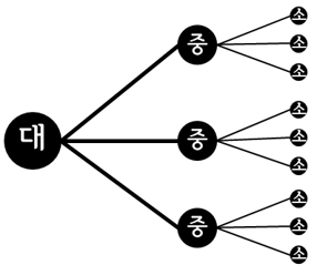 수많은 책과 강의에서 트리 다이어그램을 알려줄 때 대중소大中小 순서로 하라고 한다. 즉 큰 것을 중간 것으로 나누고, 중간 것을 다시 작은 것으로 나누는 방식이다. 이를 로직 트리 Logic Tree라고 부른다. 일반적인 것에서 개별적이고 특수한 것을 끌어내니 연역적인 방법이라 할 수 있다.