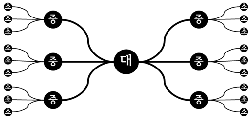 대중소 순서가 가장 일반적이고 이상적인 방식이다. 하지만 내가 일 쪼개기에 익숙하지 않거나 처음 하는 일이라 아예 감이 안 올 때 대중소 순서로 하면, 일이 잘 안 쪼개지기도 한다. 이럴 때 쓸 수 있는 게 소중대小中大 순서이다. 작은 것부터 떠올리고, 비슷한 것들끼리 묶어서 중간 것을 만들고, 중간 것을 묶어서 큰 것을 만드는 방식이다. 개별적이고 특수한 것에서 일반적인 것을 도출하니 귀납적인 방법이라 할 수 있다.