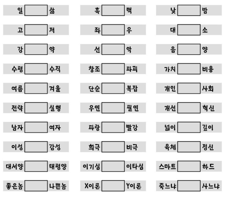 만약 ‘이상한 놈’이 떠올랐다면 영화 제목의 영향을 받은 탓일 것이다. 가만히 살펴보면 몇 개의 단어를 제외하고는 □에 적절한 단어를 넣기가 쉽지가 않다.