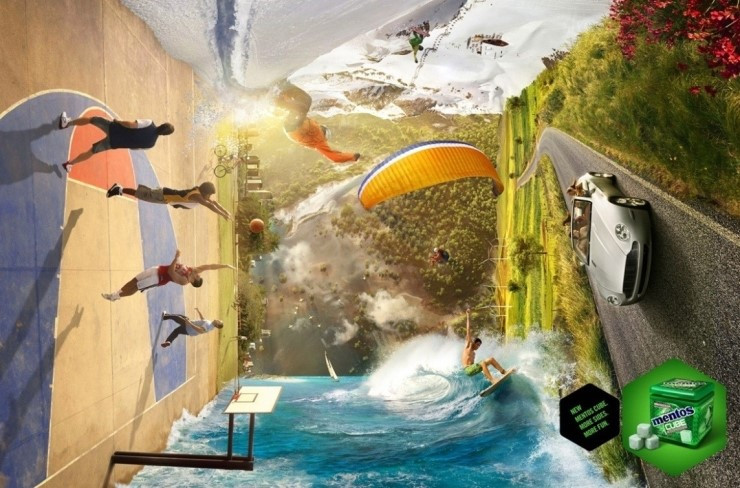 멘토스 큐브를 먹으면 봄, 여름, 가을, 겨울을 모두 즐길 수 있는 정육면체 세상이 펼쳐진다. 사계절을 느낄 수 있지만 그렇다고 해서 맛이 네 가지는 아니다.