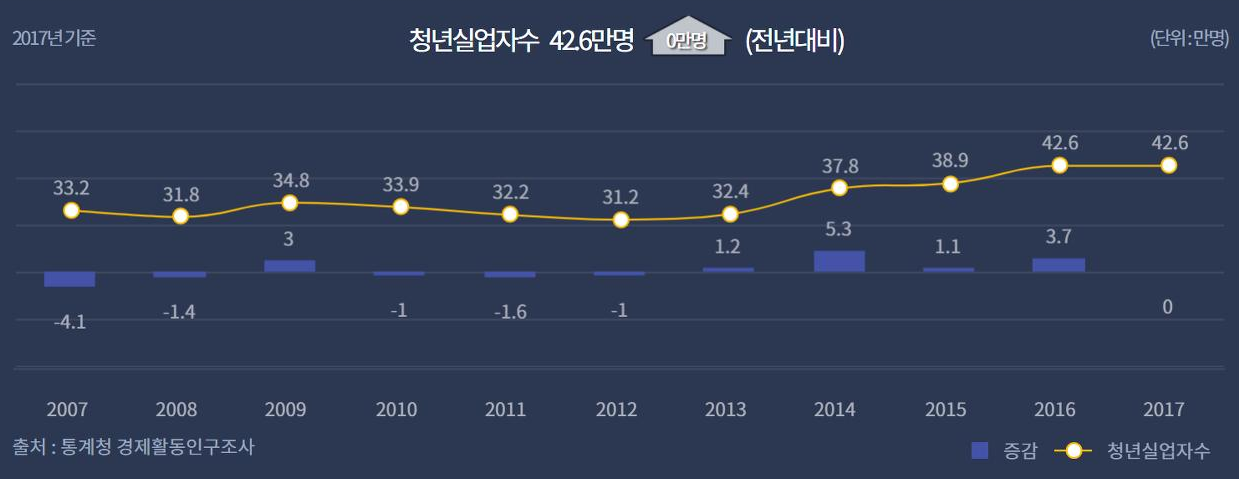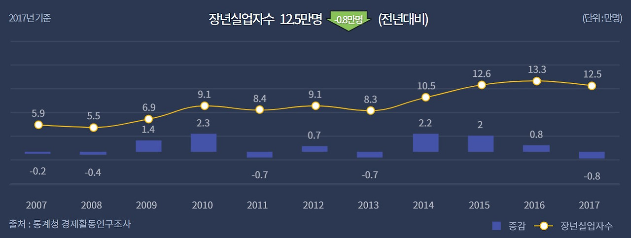하지만 2017년 기준 청년실업자 42만 명, 여성실업자 39만 명, 장년실업자 12만 명, 비정규직 658만 명으로 실업자와 비정규직의 수가 해가 갈수록 늘고 있는 현실을 생각하면 <일은 좀 줄이고, 너만의 행복을 찾아라>라는 트렌드를 마냥 따라가기엔 묘한 불안감이 들기도 한다. 일자리를 찾는 사람에게도 일자리가 있는 사람에게도 현실은 녹록지 않다.