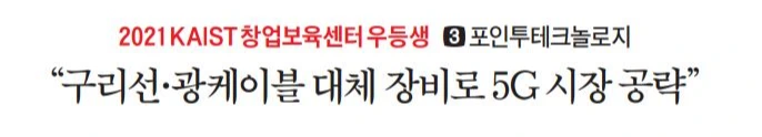 당시 만났던 기술기반 스타트업 중에서는 독자적인 기술로 데이터센터의 광케이블을 대체할 수 있는 기술을 가진 포인투테크놀로지가 가장 인상 깊었어요. 포인투테크놀로지는 2014년 창업한 반도체 팹리스 회사로서 5G, 6G 네트워크 통신, 차세대 케이블 네트워크 통신 및 클라우드 데이터센터 제품 분야에 기술력을 보유하고 있었어요.