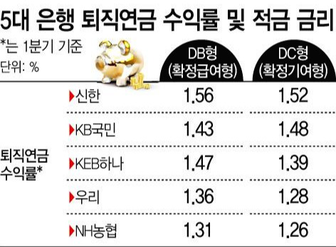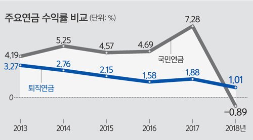 하지만 국내 시중은행의 최근 1년간 퇴직연금 평균 수익률(9월 말 기준)이 은행 정기예금 금리보다 낮은 것으로 나타났다. 잇따른 기준금리 인하로 역대 최저 수준으로 떨어진 예금금리보다 낮아 국민 노후를 책임진다는 말이 무색하다. 최근 10년간(2009~2018년) 평균 수익률은 2.91%에서 7년간(2012~2018년) 2.19%, 5년간(2014~2018년) 1.65%, 3년간(2016~2018년) 1.43%로 연평균 0.1~0.3% 포인트씩 하락했다. 물가 상승률 등을 감안하면 사실상 마이너스로 볼 수 있다. 더 큰 문제는 일시적인 현상이 아닌 적어도 지난 3년간 같은 부진이 이어지고 있다는 것이다.