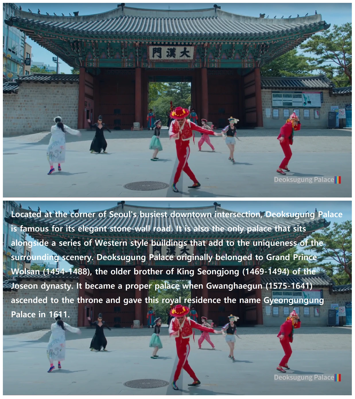위(시선분산 방지 오리지널 버전) vs. 아래(친절한 TMI 버전 예시); 출처: YouTube 'Imagine Your Korea' 채널