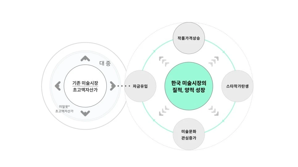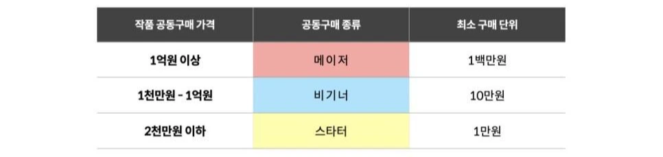 주식시장을 보면 그 어느 기업도 주주 한 명이 주식을 전부 소유한 경우가 없고 그 기업의 미래가치에 대한 확신을 가진 다수의 주주가 기업의 주식을 보유하는데 미술품도 동일하게 적용할 수 있지 않을까? 그게 진정 대중을 위한 아트펀드가 아닐까?
