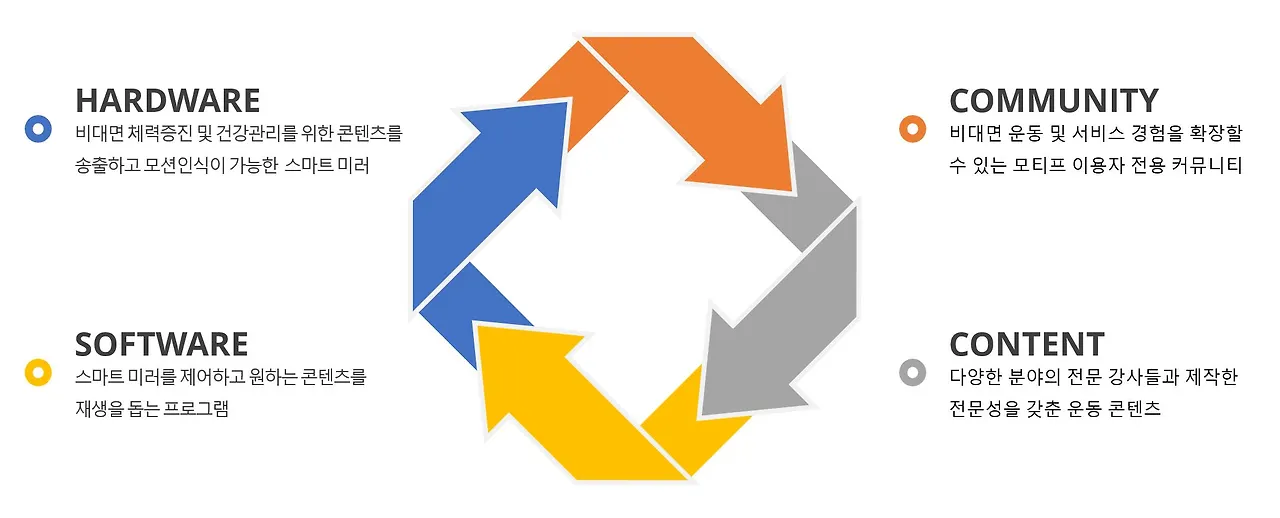 이에 따라 ‘모티프'를 만들기 위해 필요한 구성은 하드웨어, 소프트웨어, 콘텐츠, 커뮤니티, 그리고 이들 간의 유기적인 연계라고 정의했어요.