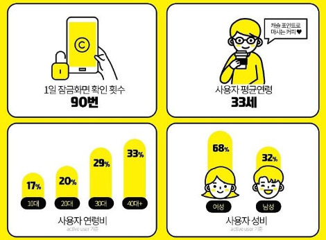 사용자의 평균 연령이 33세이고 서비스 유저의 33%가 40대 이상인 것을 통해 주 이용자들이 의외로 일정한 소득이 있는 비교적 구매력이 있는 세대임을 알 수 있다. 또 다른 흥미로운 점은 서비스 이용자 중 여성의 비중이 58%라는 점이다. 소액이지만 여성들이 더 적극적으로 임하는 것을 알 수 있다. 특히 바이럴의 핵심인 30대 이상의 주부들이 핵심 유저인데 육아맘 카페에서 캐시슬라이드 사용기가 꾸준히 공유되고 있다.