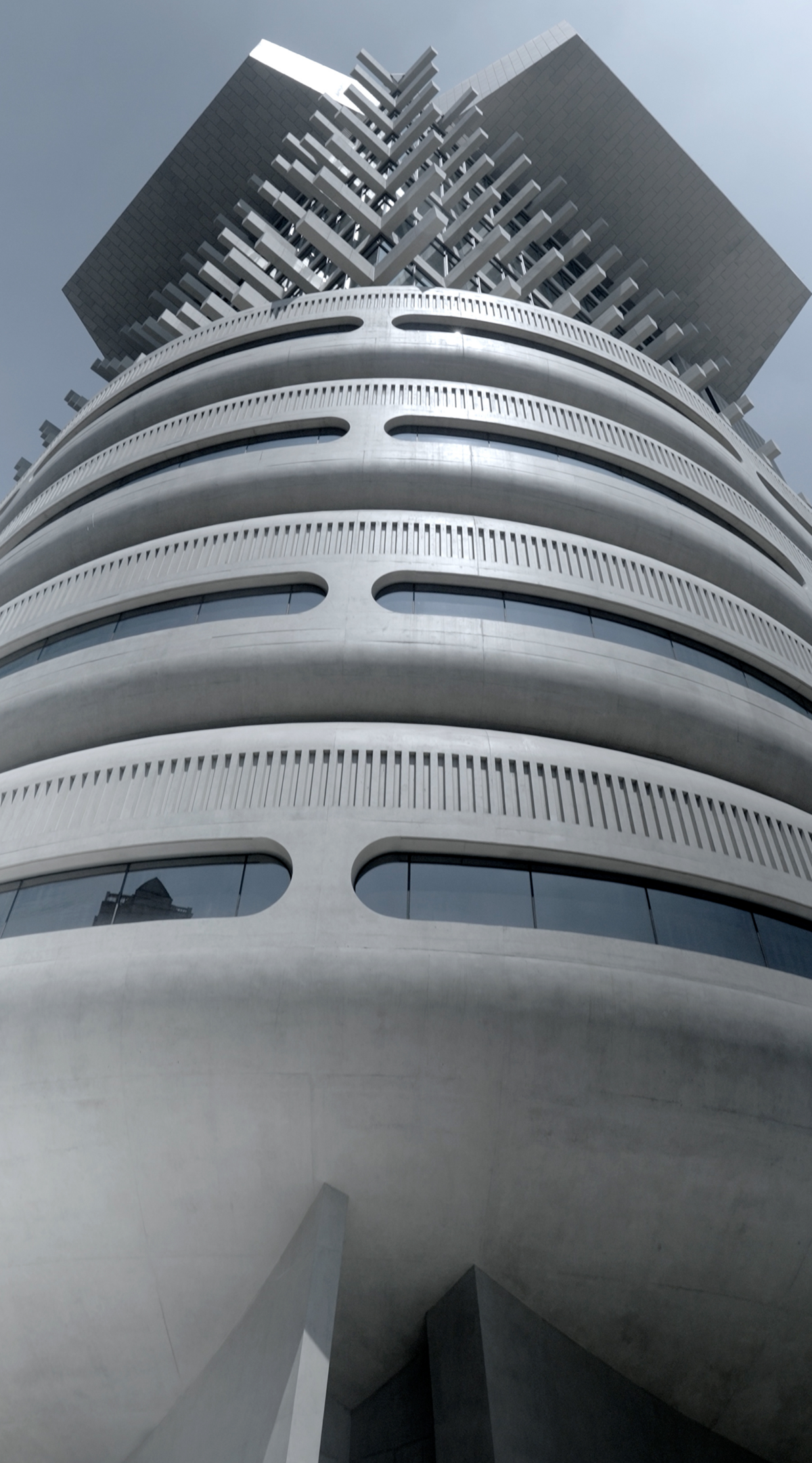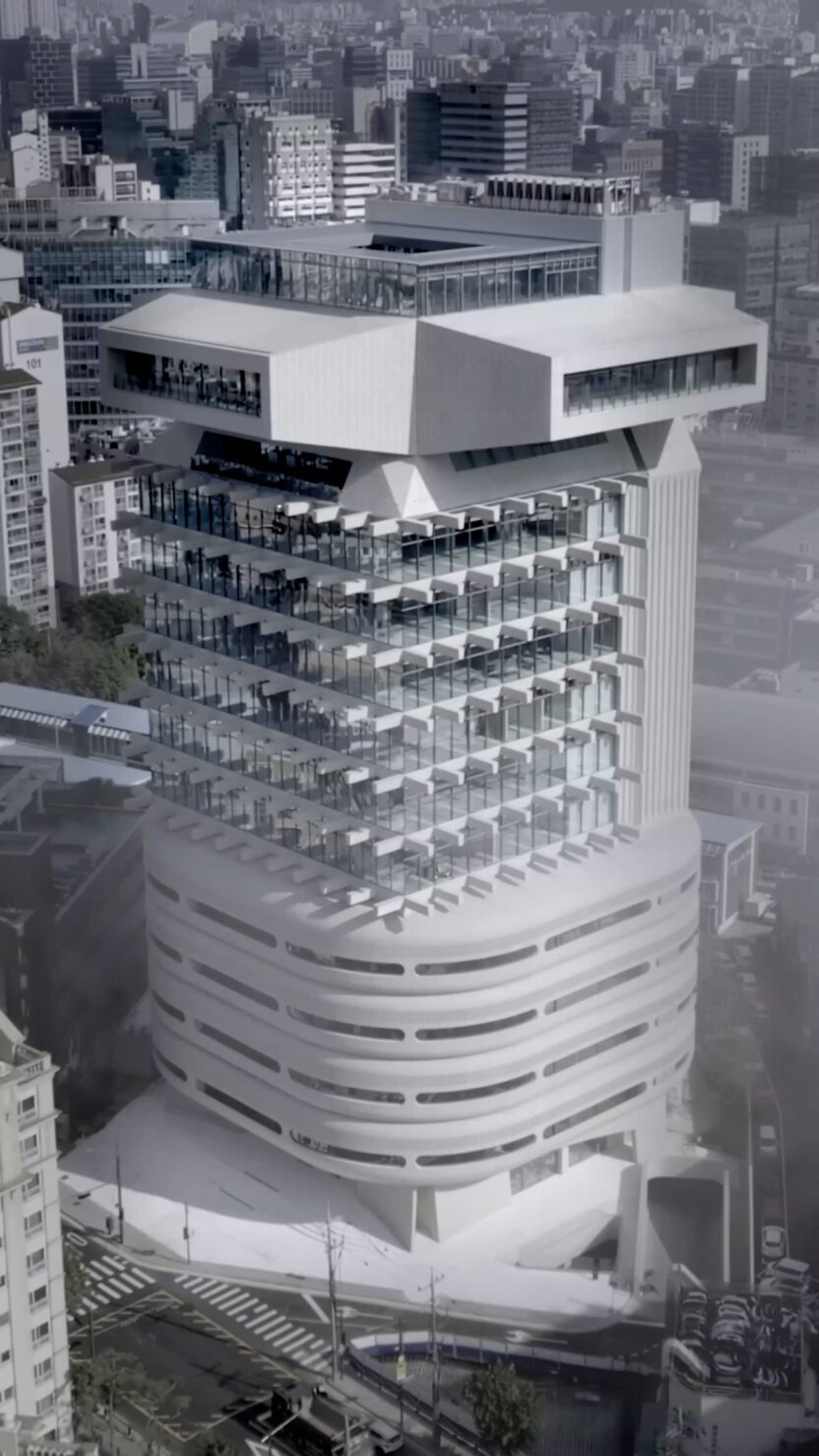 건물 아래쪽의 둥근 느낌과 라운딩 창문은 정말 충격적이었습니다. 가장 직관적인 것은 듄에 나오는 거대한 우주 생물의 주름 같기도 했고, 또 한편으로는 스타워즈의 스톰트루퍼 헬멧의 매끈하고 미래적인 곡선이 떠오르기도 했습니다. 상부의 위태로움에 대비되는 부드러우면서도 안정감을 주는 요소처럼 보였습니다.
