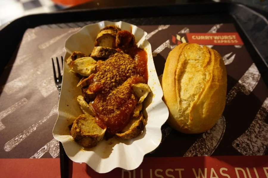 여기저기서 들려오는 독일어도 참 신기했다. 계속 중앙역 주변을 맴돌며 구경하다 보니 배가 고파졌다. 커리부어스트라는 것을 먹어보기로 했다. 독일에 왔으면 소세지와 맥주 아니겠어? 하며 현지인인지 관광객인지 잘은 모르겠지만, 아무튼 사람들이 가장 많이먹는 메뉴로 똑같이 주문했다. 딱딱한 빵 한덩이와 커리부어스트를 5유로에 사먹었다.