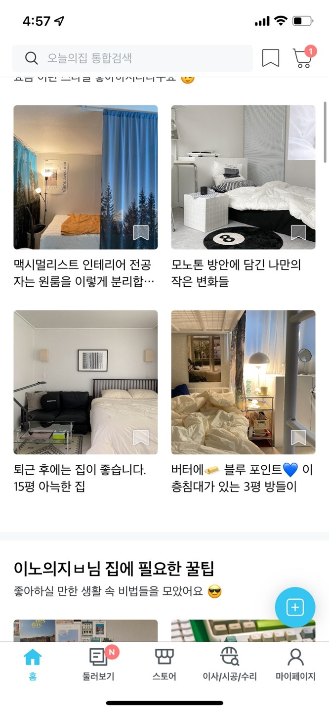 오늘의 집은 커머스 플랫폼이지만 다른 서비스들과 다르게 처음 홈에서 마주하는 사용자 경험이 다르다. 직접적으로 제품을 추천해 주고 구매를 유도하기보다는, '이 제품을 사고 싶다'라는 동기를 부여하는데 더 많은 과정과 경험을 제공한다.