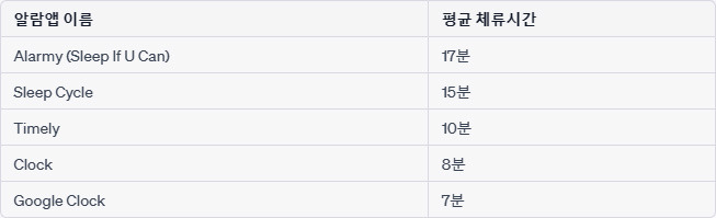 - 사람들에게 꼭 필요한 기본 유틸리티앱, 잠에서 깨어나기 위해 사용한다는 목적성이 뚜렷하기 때문에, 일반적으로는 잠들기 전과 아침에 단발성으로 사용되지만 매일 필요한 기능으로 리텐션이 높은 것으로 추정된다.