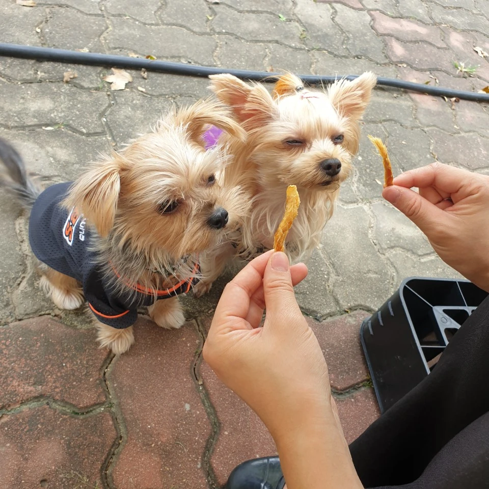 간식이 두개 있어야 사이 좋게 나눠 먹는다