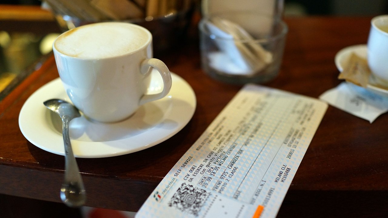 아무튼 표도 끊었겠다, 탑승까지는 시간이 좀 있으니 여유롭게 돌아다녀보기로 했다. 생각해보니 지도만 보고 걸어온지라 역사가 어떻게 생겼는지도 모르고 있었다. 날씨도 이렇게 좋은데! 난 놀러 왔는데! 다시 밖으로 나와 햇볕도 좀 쫴야겠다. 역 건물 외곽에 Bar라고 써 있는 곳이 있었다. 메뉴를 보니 여기서 커피를 파는 것 같다. 생각해보니 스타벅스 메뉴판이 죄다 이탈리아어로 돼 있던 덕에 은근히 익숙한 단어가 많다.