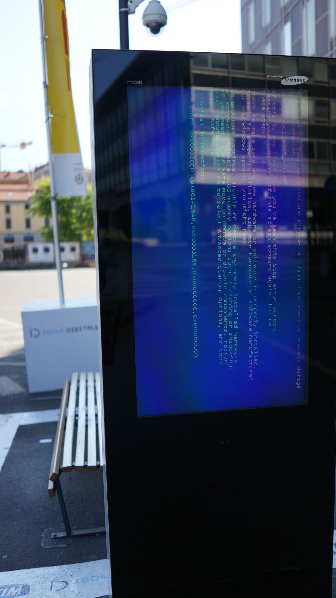 걷다보니 멀리서 뭔가 파란 스크린 같은게 있어서 가까이 가 봤더니 정말 블루스크린이었다. 블루스퀘어를 떠올리게 할 삼성의 마케팅인가 잠깐 생각해봤지만 그런건 아니고 냥 망한 것 같다. 아무튼 머나먼 곳에서 이런 걸 발견하니 묘하게 반갑다.